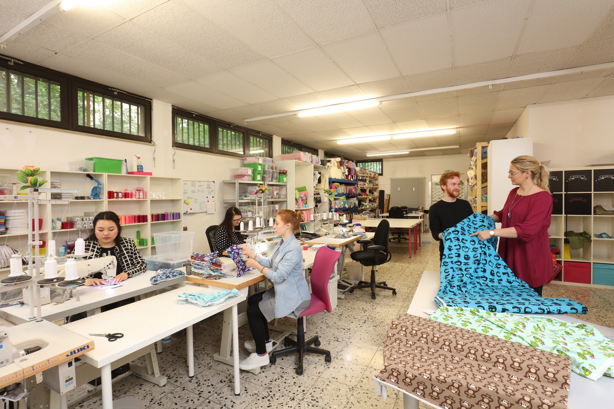 Nachdem die Rückmeldungen ihrer Kunden sehr positiv waren, beschloss sie, auf der Consumenta und später auf Herbstmarkt und Christkindlesmarkt auszustellen. Mit Hilfe ihrer Familie fertigte die Unternehmerin in Heimarbeit bis zu 200 Stücke am Tag. „Wir haben zunächst zuhause im Einfamilienhaus genäht, im Erdgeschoss war die Produktion, der Keller war das Lager“, erzählt sie.