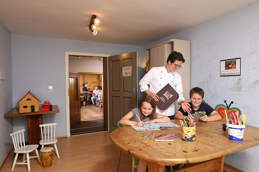 Doris Reck-Hartmann (hier mit ihren beiden Kindern) hat ein Spielezimmer für die kleinen Gäste eingerichtet. (Foto: Kurt Fuchs/IHK)
