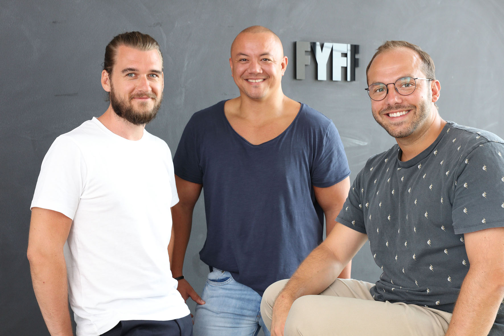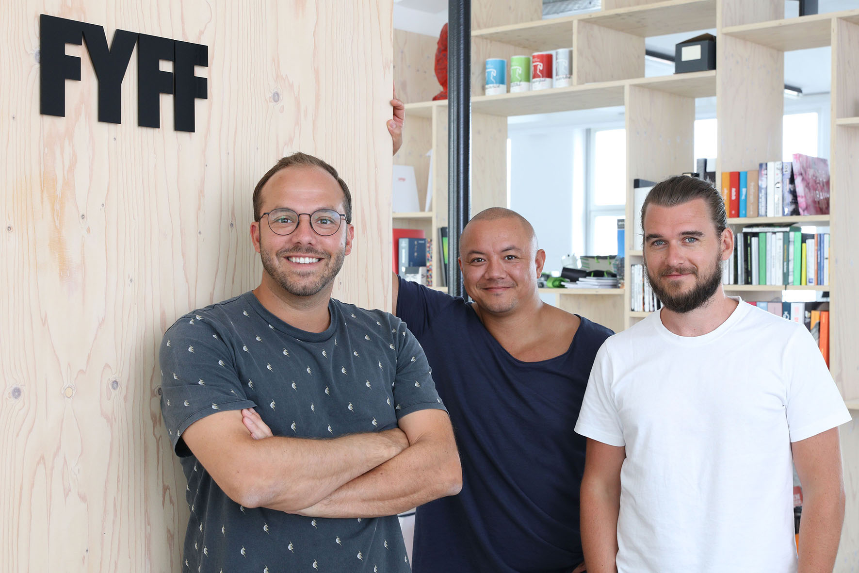 „Die Kunden wollen für ihre Werbung junge, frische Köpfe und eine Agentur ohne Wasserkopf“: So beschreibt Daniel D’Angelo eines der Erfolgsrezepte der Nürnberger FYFF AG (sprich „feif“). Gemeinsam mit Andreas Amtmann und Maurice Hodge bildet er den Vorstand der im Jahr 2013 gegründeten Agentur, deren Abkürzung für „for you for fame“ steht. FYFF habe fast von Anfang an schwarze Zahlen geschrieben und im vergangenen Jahr bereits rund sechs Mio. Euro umgesetzt. Außerdem hat die junge Agentur schon ein gutes Dutzend Design-Preise gewonnen, darunter so bedeutende Auszeichnungen wie den Reddot Award und den IF-Award. In den fünf Jahren seit der Gründung hat die FYFF AG, die ihren Sitz im Loftwerk in der Nürnberger Ulmenstraße hat, zahlreiche prominente Kunden für sich gewinnen können: Auf der Referenzliste stehen u. a. Apollo Optik, Adidas, Immowelt, Porsche, Siemens, ProSiebenSat.1 Media, Kaspersky Lab, Egger und Rödl & Partner.