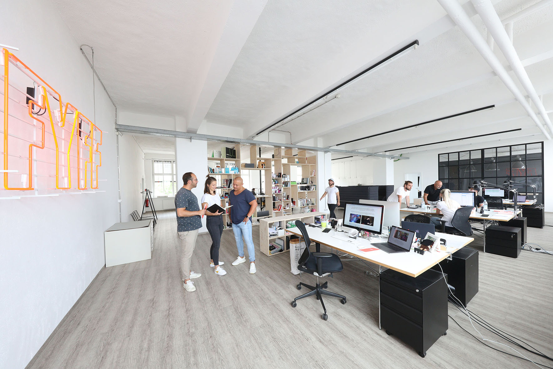 Kreative Arbeitsumgebung: Die Büros der FYFF AG im Loftwerk in der Ulmenstraße.