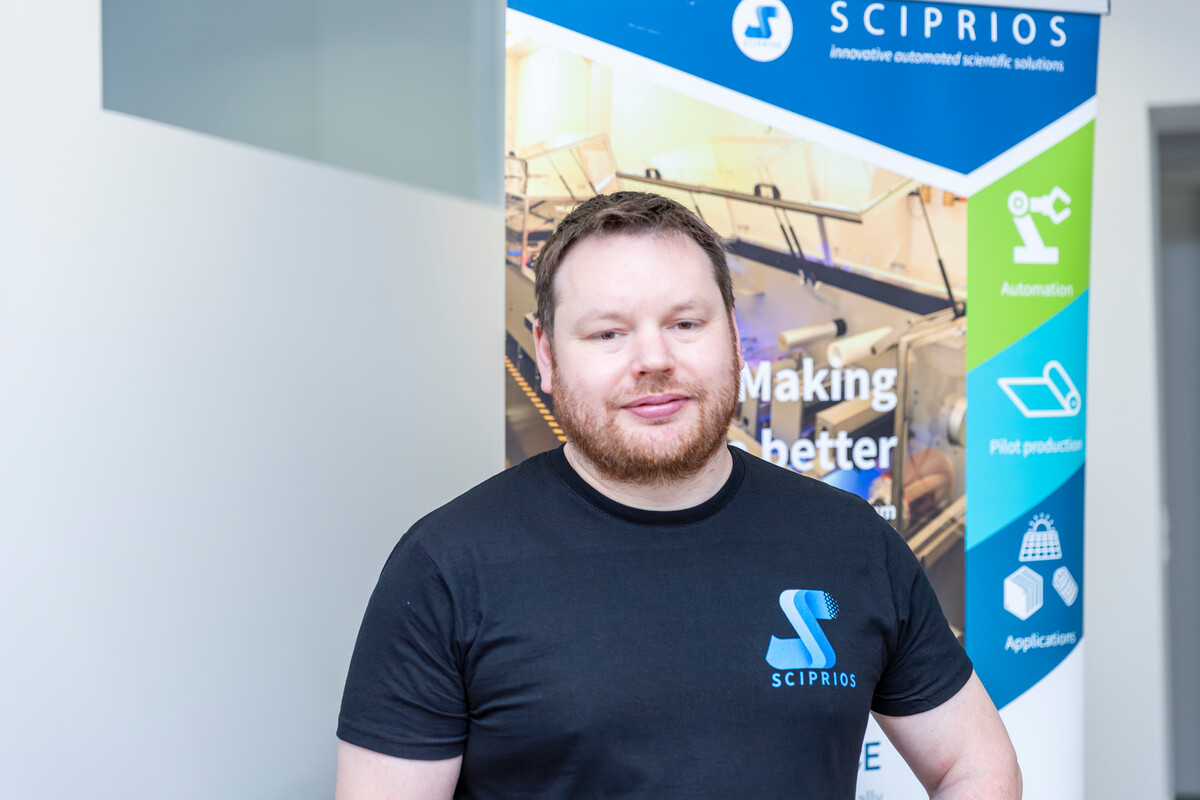 Für Forschungsarbeiten in der Beschichtungstechnik sind umfangreiche Versuchsreihen notwendig, die aufwendig und langwierig sind. „Das muss man doch automatisieren können“, dachte sich Dr. Tobias Stubhan, Gründer der Sciprios GmbH in Fürth. Er selbst machte diese Erfahrungen während seiner Doktorarbeit und überlegte im Anschluss mit einer Arbeitsgruppe, wie man mit Automatisierung die Forschung und Entwicklung zu gedruckter Elektronik (elektronischen Bauelementen, die sich mittels Druckverfahren herstellen lassen) beschleunigen kann. 2018 gründete er dann die heutige Sciprios GmbH, ein Spin-off des Bayerischen Zentrums für Angewandte Energieforschung (ZAE Bayern) und des Helmholtz-Instituts Erlangen-Nürnberg für Erneuerbare Energien (HI ERN).